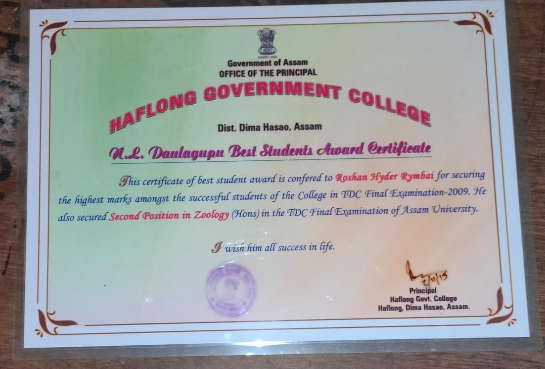 3N.L DAULAGUPU AWARD FOR SECURING HIGHEST MARK IN THE COLLEGE . ROSHAN RYMBAI ALSO SECURED THE 2ND 2009-10-02View File