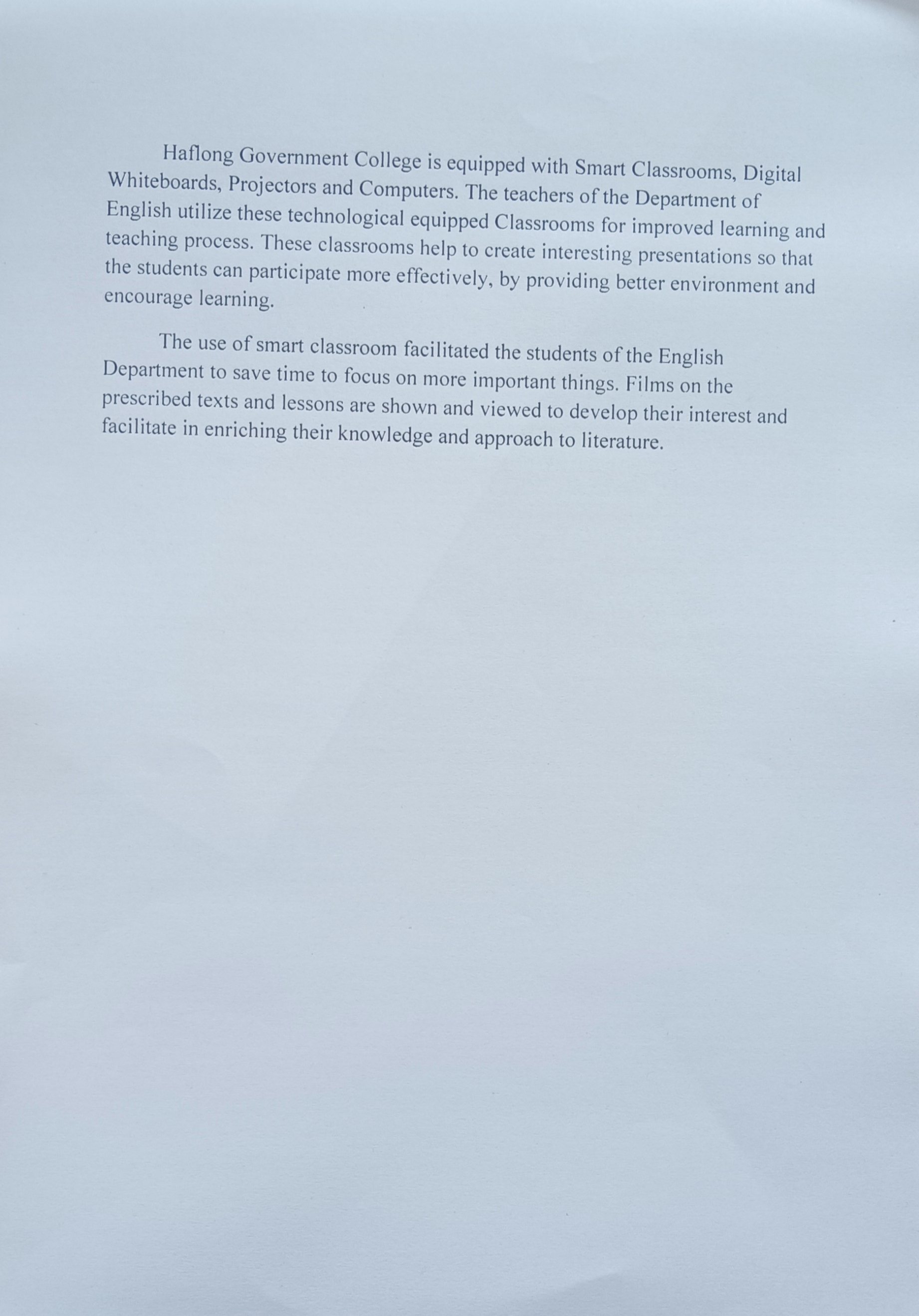 | Use of Smart Classrooms | Utilisation of Smart Classrooms by the Department of English. | 2024-03-15 | View File |