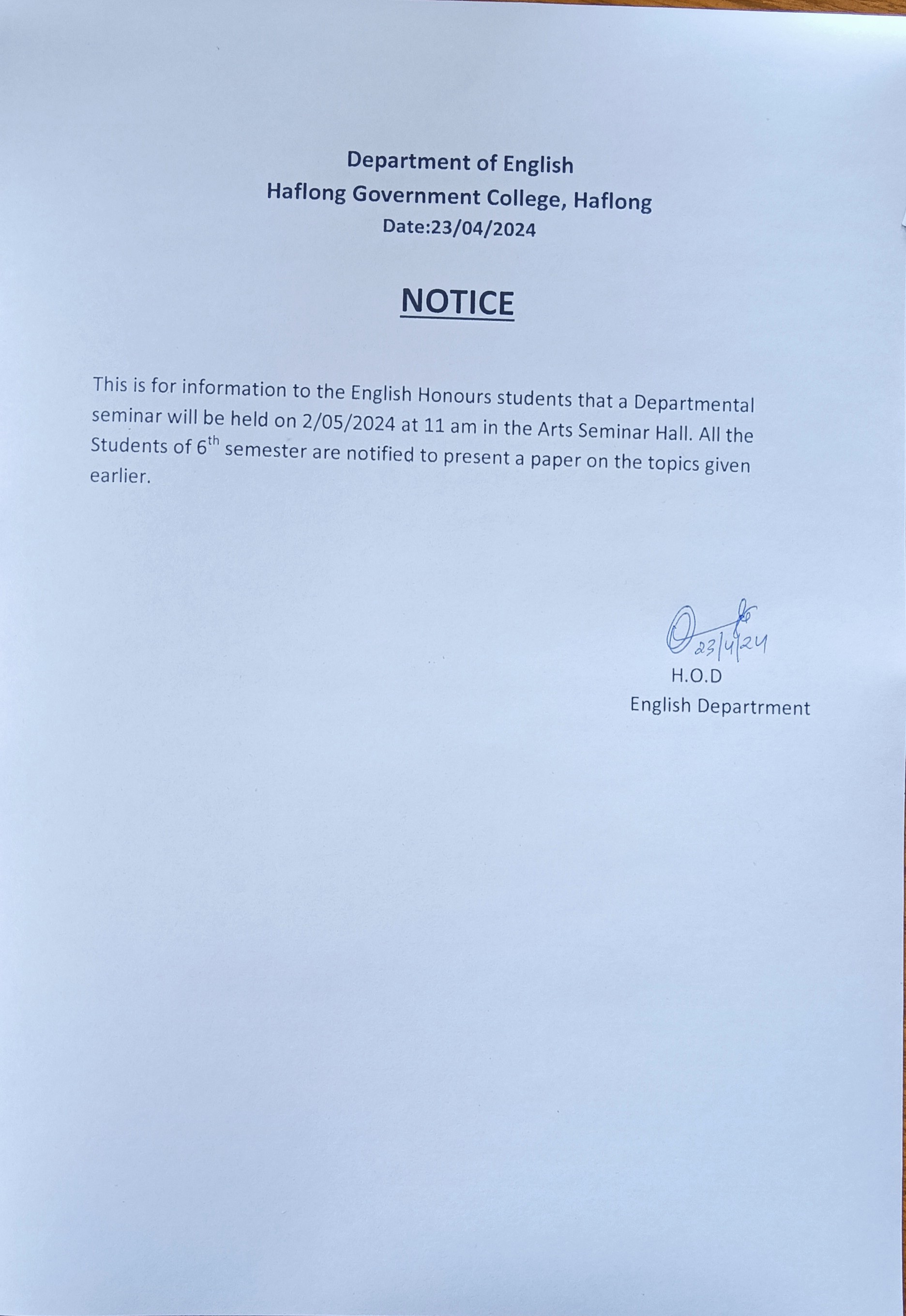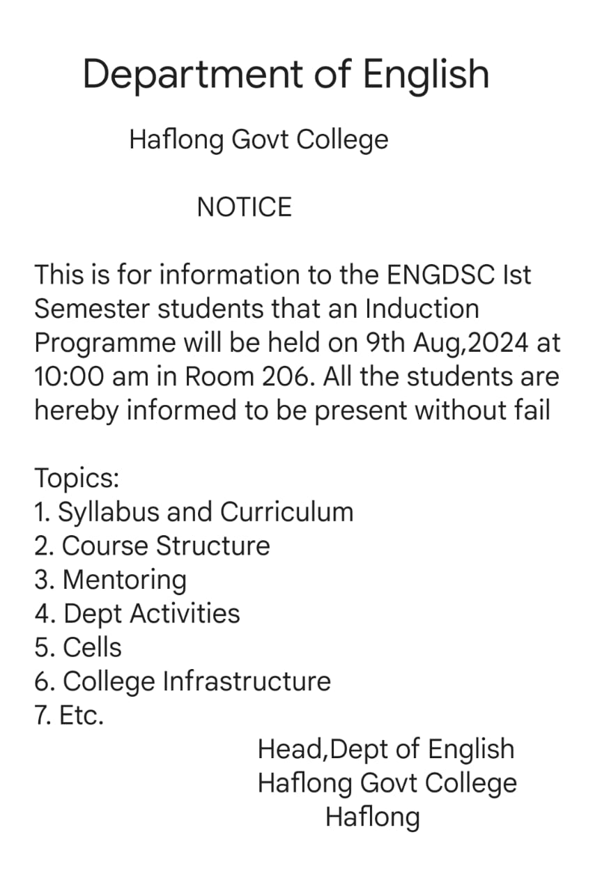 | Notice Department of English Haflong Government College Haflong HS 1st View 2024-03-14 |