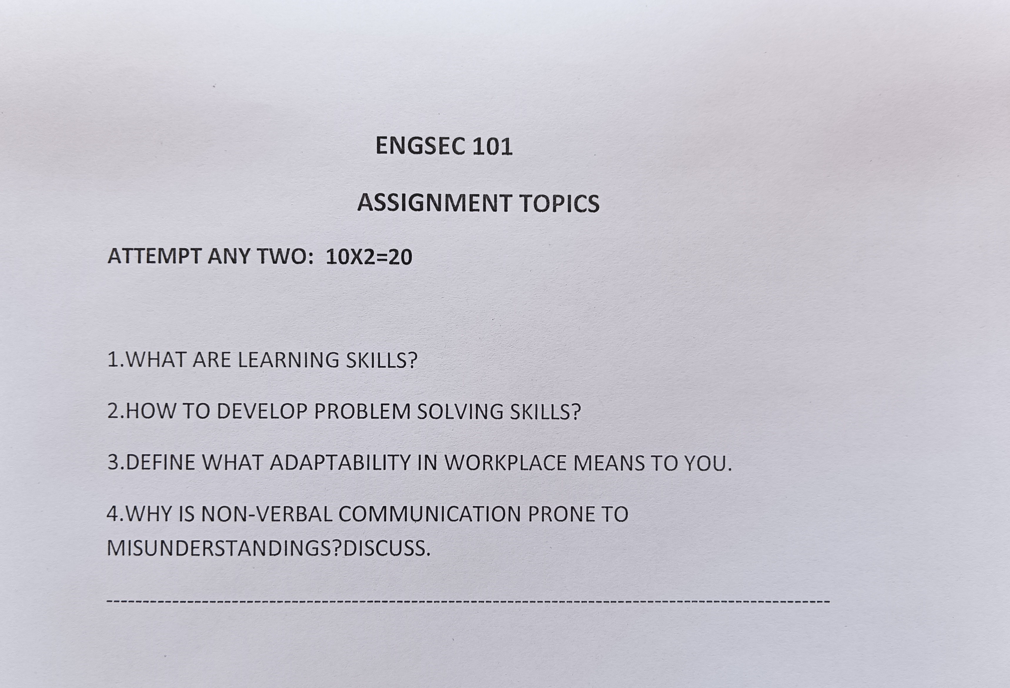 | 1st Semester ENGSECAssignment Topics for FYUG ENGSEC 101 View 0000-00-00 |