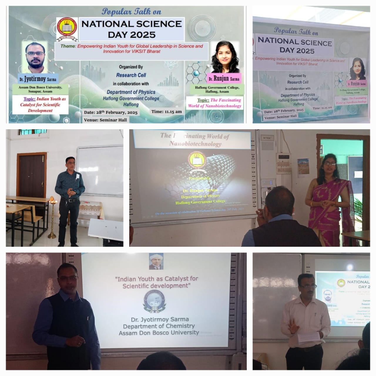 | 76 | National Science Day 2025. | The National Science Day 2025 was celebrated by the Dept. of Physics in collaboration with the Research and promotion cell. Popular talks were delivered by Dr. Jyotirmoy Sarma and Dr. Runjun Sarma. | 2025-02-28 | View File |