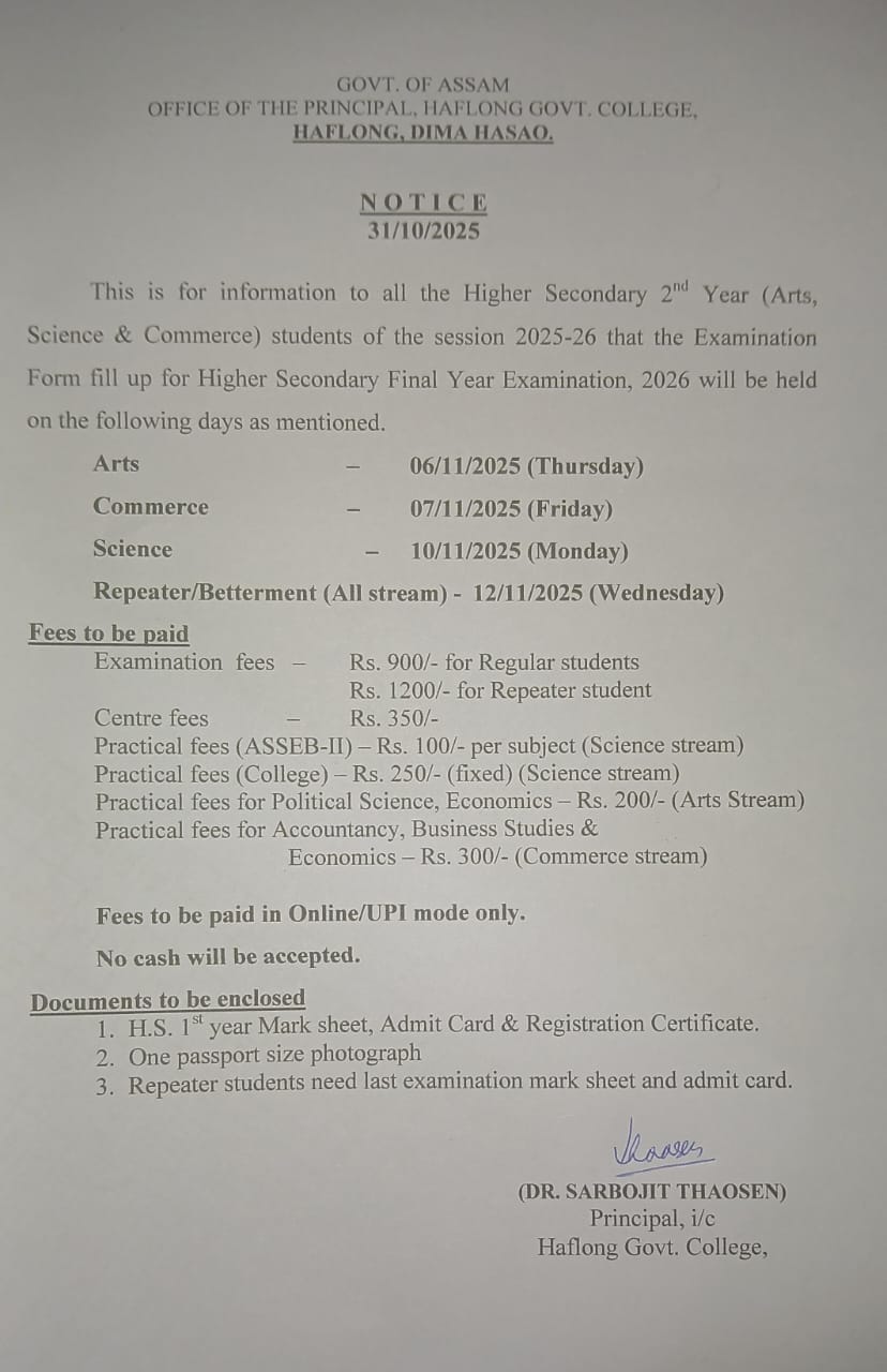 | 42 | Notification for those students who have appeared H.s 1st year examination 2025 & also who have failed H.S 2nd year examination 2025. | 2025-05-03 | No Link | View File |